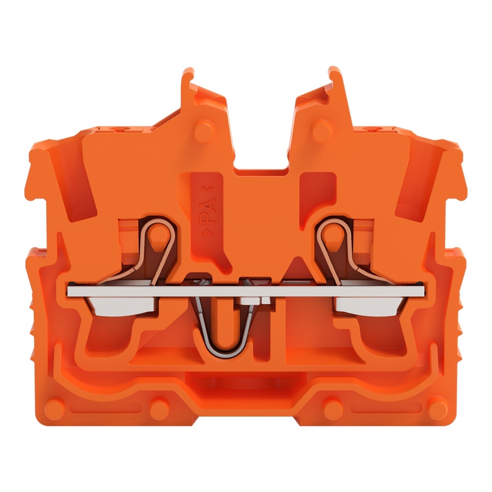Wago 2Leiter Mini Durchgangsklemme 2250-302 2-Leiter-Mini-Durchgangsklemme, mit Drücker, 1 mm², Endklemme mit Befestigungsflansch, seitliche und mittige Beschriftung, mit Prüföffnung, Push-in CAGE CLAMP, 1,00 mm², orange Hersteller Wago Klemmen EAN Nr. 4066966310993 Warengruppe WAGO Miniklemmen