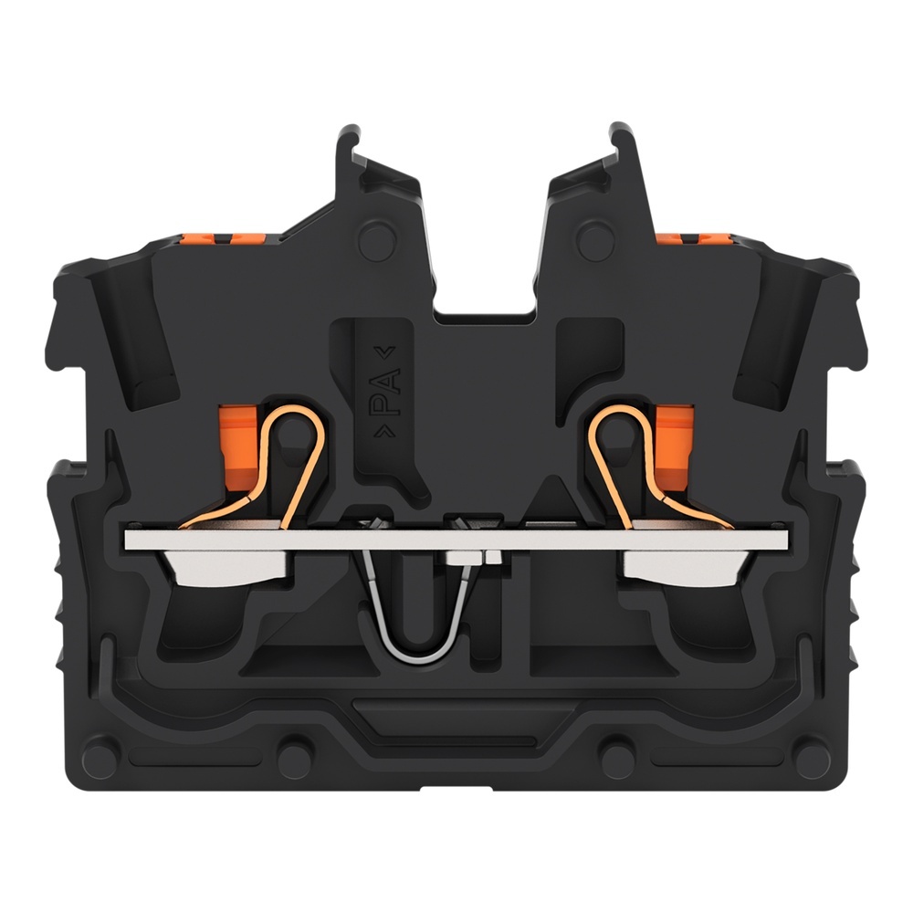Wago 2Leiter Mini Durchgangsklemme 2250-325 2-Leiter-Mini-Durchgangsklemme, mit Drücker, 1 mm², Mittelklemme ohne Rastfuß, ohne Flansch, seitliche und mittige Beschriftung, mit Prüföffnung, Push-in CAGE CLAMP, 1,00 mm², schwarz Hersteller Wago Klemmen EAN Nr. 4066966237658 Warengruppe WAGO Miniklemmen