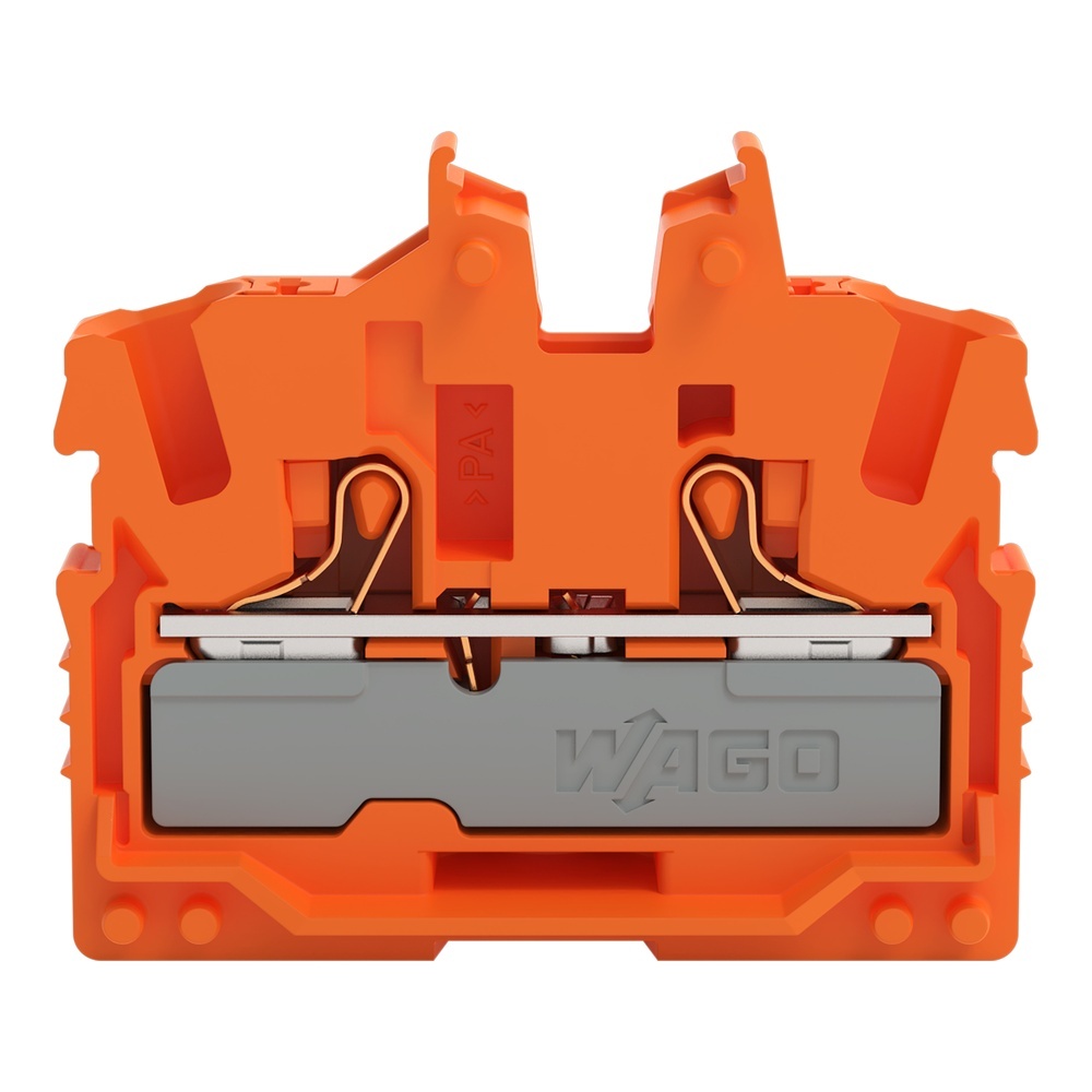 Wago 2Leiter Mini Durchgangsklemme 2252-302 2-Leiter-Mini-Durchgangsklemme, mit Drücker, 2,5 mm², Endklemme mit Befestigungsflansch, seitliche und mittige Beschriftung, mit Prüföffnung, Push-in CAGE CLAMP, 2,50 mm², orange Hersteller Wago Klemmen EAN Nr. 4066966310757 Warengruppe WAGO Miniklemmen