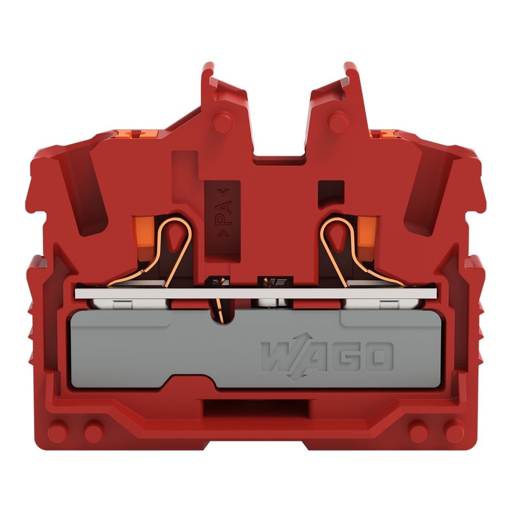 Wago 2Leiter Mini Durchgangsklemme 2252-303 2-Leiter-Mini-Durchgangsklemme, mit Drücker, 2,5 mm², Endklemme mit Befestigungsflansch, seitliche und mittige Beschriftung, mit Prüföffnung, Push-in CAGE CLAMP, 2,50 mm², rot Hersteller Wago Klemmen EAN Nr. 4066966310597 Warengruppe WAGO Miniklemmen