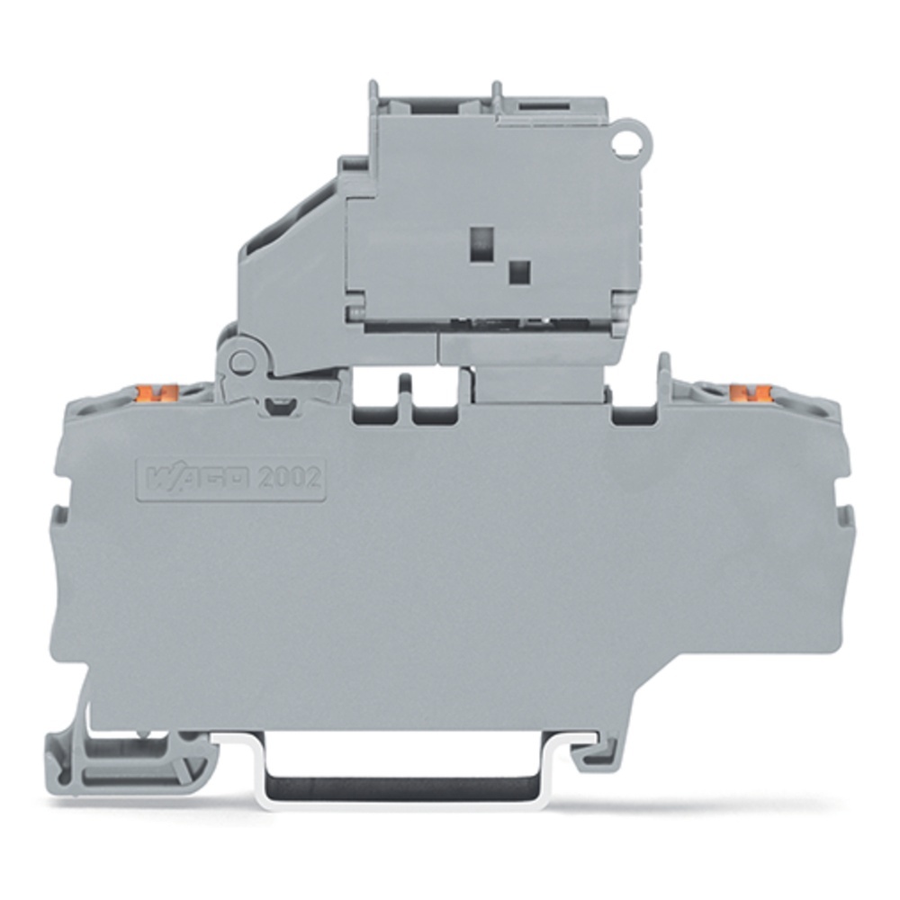 Wago 2Leiter Sicherungsklemme 2202-1911/1000-836 2-Leiter-Sicherungsklemme, mit schwenkbarem Sicherungshalter, mit zusätzlicher Brückung, für G-Sicherungseinsatz 5x20 mm, mit Drücker, mit Defektanzeige durch LED, 230 V, für Tragschiene 35x15 und 35x7,5, 2,5 mm², Push-in CAGE CLAMP, 2,50 mm², grau Hersteller Wago Klemmen EAN Nr. 4055143962148 Warengruppe WAGO Reihenklemmen