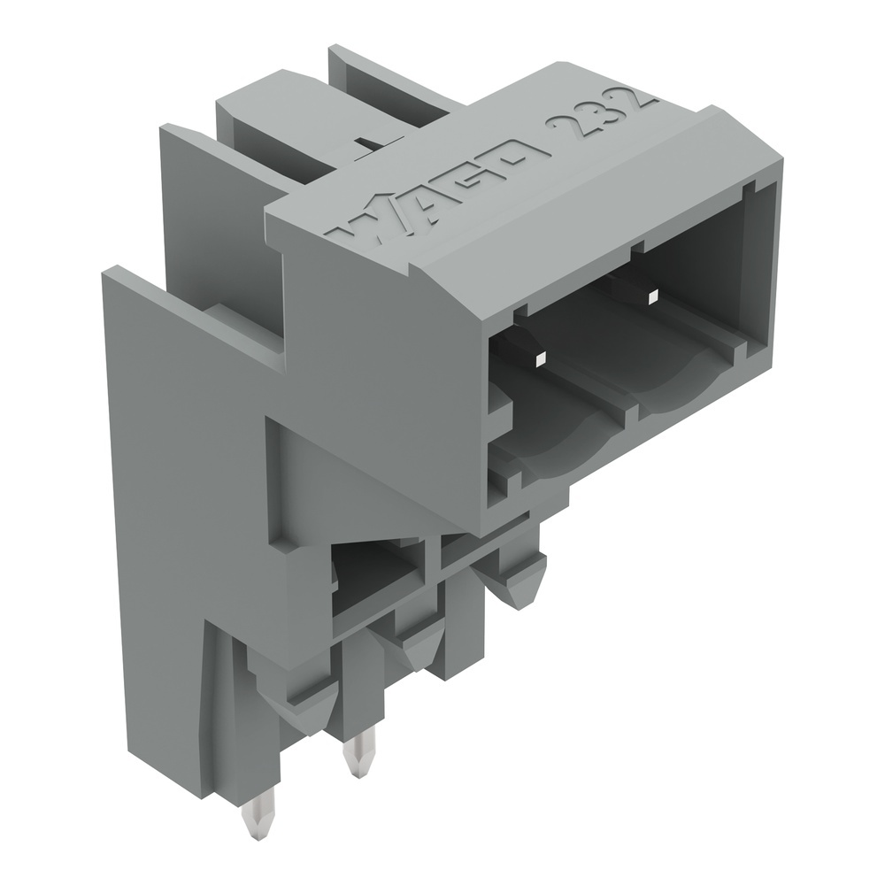 Wago Aufstock Stiftleisten 232-332 Aufstock-Stiftleisten mit abgewinkelten Lötstiften 2-polig Rastermaß 5 mm/0.197 in mit Seitenwänden Steckrichtung parallel zur Leiterplatte grau Wago Serie 232 EAN Nr. 4044918685429 Warengruppe WAGO Multistecksystem
