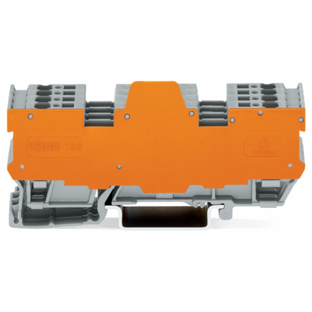 Wago Basisklemmenblock 769-194/769-319 1-Leiter/1-Leiter-Basisklemmenblock mit 2-fach-Querbrückung mit oranger Trennplatte 21,1 mm breit nach EN 60715 8-polig grau Wago Serie 769 EAN Nr. 4044918935272 Warengruppe WAGOxCOM System