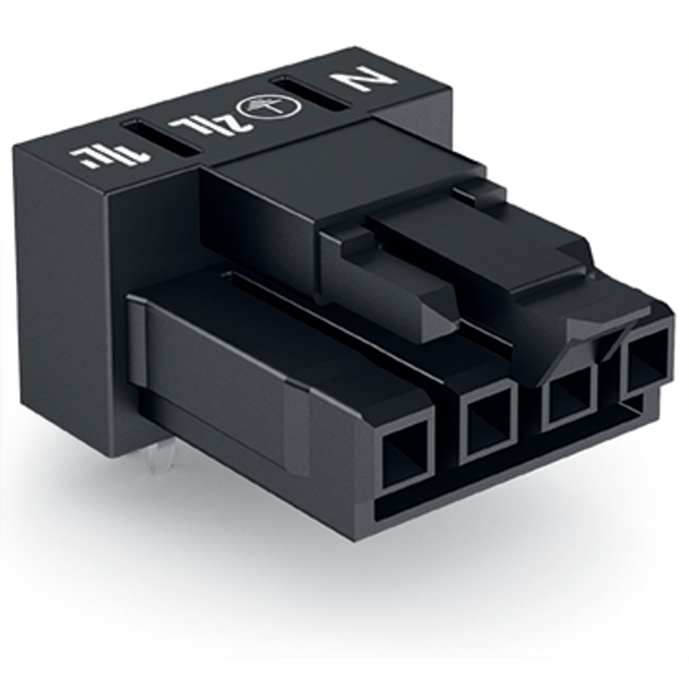 Wago Buchse 890-804/011-000 Buchse für Leiterplatten abgewinkelte Bauform 2 Lötstifte pro Pol 4-polig Kodierung A schwarz Hersteller WAGO Serie 890 EAN Nr. 4050821695660 Warengruppe WAGO Steckverbinder WINSTA