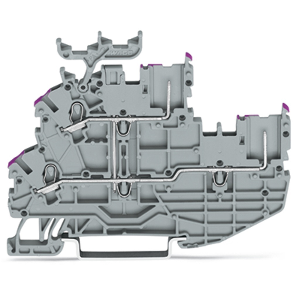 Wago Doppelstock 2020-2208 2-Leiter/2-Pin-Doppelstock-Basisklemme 2-Leiter/2-Pin-Durchgangsklemme L ohne Beschriftungsträger Gehäusefarbe grau intern gebrückt Federleisteneinführung violett bedruckt grau Wago Serie 2020 EAN Nr. 4050821049531 Warengruppe WAGOxCOM System