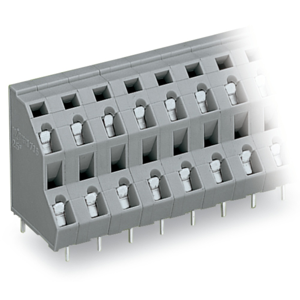 Wago Doppelstock Klemmenleiste 736-558 Doppelstock-Klemmenleiste 2 Lötstifte um das halbe Rastermaß versetzt 8x2-polig Rastermaß 7,5 mm/0.295 in grau Wago Serie 736 EAN Nr. 4044918910941 Warengruppe WAGO Durchführungsklemmen