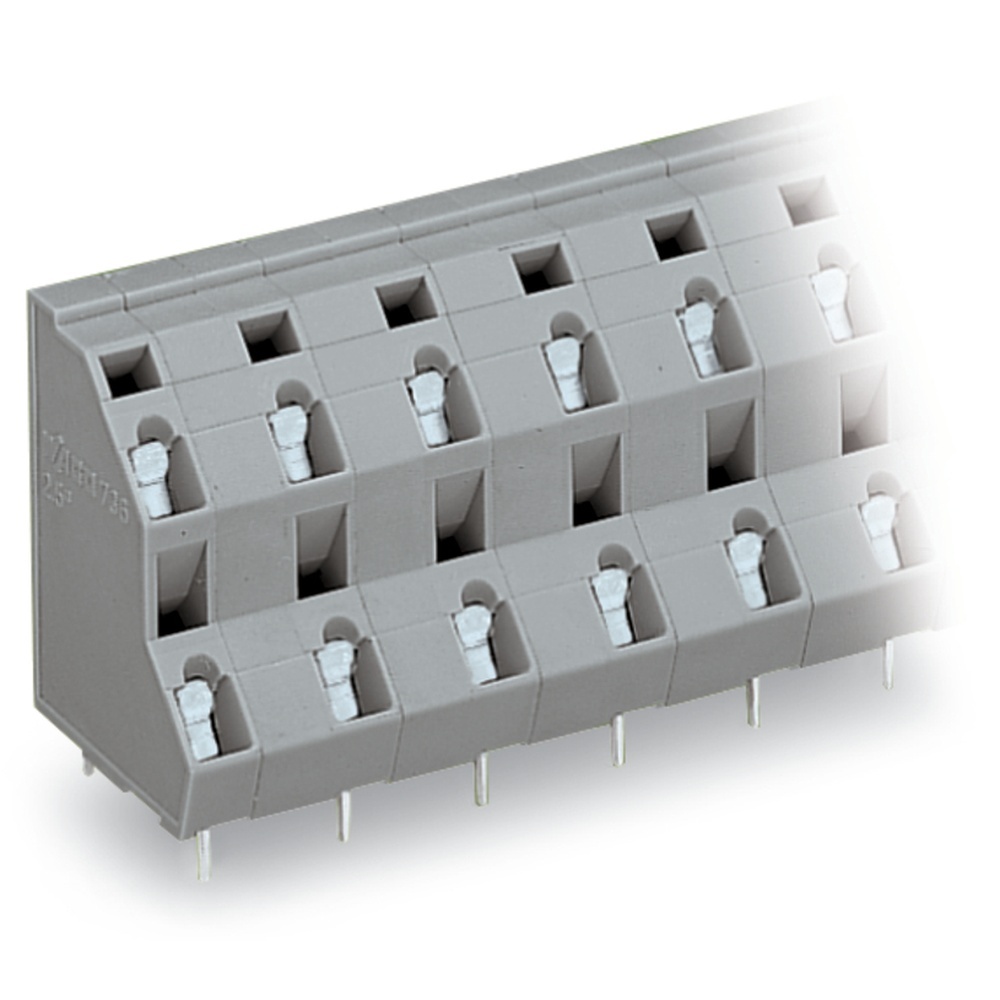 Wago Doppelstock Klemmenleiste 736-703 Doppelstock-Klemmenleiste 2 Lötstifte in Reihe 3x2-polig Rastermaß 10 mm/0.394 in grau Wago Serie 736 EAN Nr. 4044918914765 Warengruppe WAGO Durchführungsklemmen
