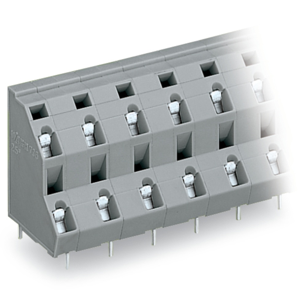 Wago Doppelstock Klemmenleiste 736-753 Doppelstock-Klemmenleiste 2 Lötstifte um das halbe Rastermaß versetzt 3x2-polig Rastermaß 10 mm/0.394 in grau Wago Serie 736 EAN Nr. 4044918911146 Warengruppe WAGO Durchführungsklemmen