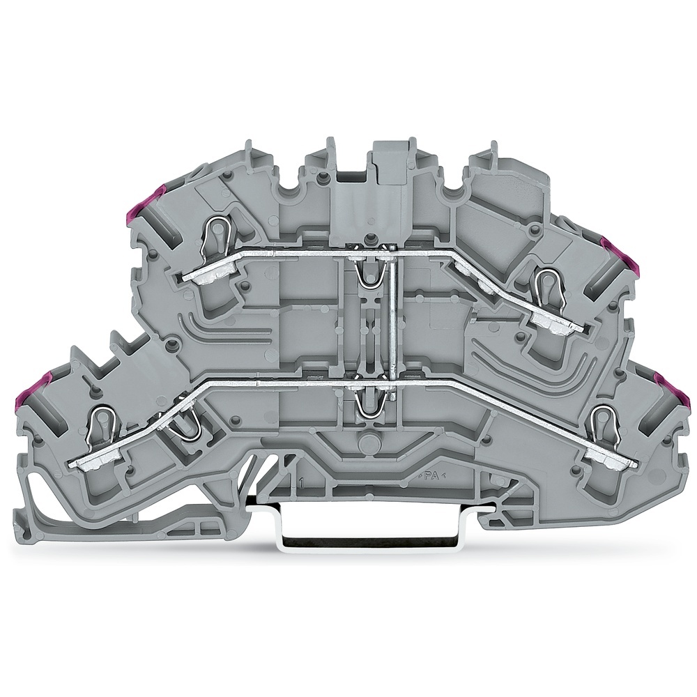 Wago Doppelstockklemme 2002-2608 Doppelstockklemme 4-Leiter-Durchgangsklemme konturengleich mit Doppelstock-Trennklemme L ohne Beschriftungsträger Gehäusefarbe grau intern gebrückt Leitereinführung violett bedruckt grau Wago Serie 2002 EAN Nr. 4050821272038 Warengruppe WAGO TopJob S Klemmen