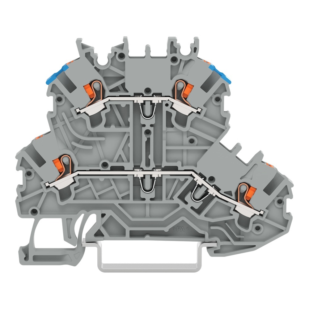 Wago Doppelstockklemme 2200-2203 Doppelstockklemme,mit Drücker,Durchgangs-/Durchgangsklemme,grau Doppelstockklemme, mit Drücker, Durchgangs-/Durchgangsklemme, L/N, ohne Beschriftungsträger, Leitereinführung OG, blau bedruckt, für Tragschiene 35x15 und 35x7,5, 1 mm², Push-in CAGE CLAMP®, 1,00 mm², grau Hersteller Wago Nr. 2200-2203 EAN Nr. 4066966478822 Warengruppe WAGO Reihenklemmen