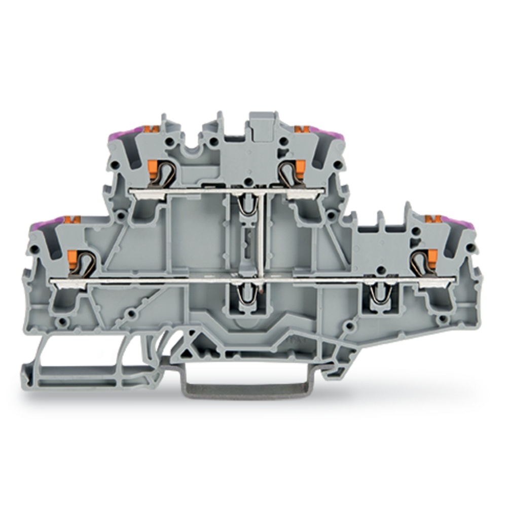 Wago Doppelstockklemme 2202-2708 Doppelstockklemme mit Drücker L 2,5 mm² grau Doppelstockklemme mit Drücker 4-Leiter-Durchgangsklemme L ohne Beschriftungsträger für Anwendungen Ex e II geeignet intern gebrückt Leitereinführung violett bedruckt für Tragschiene 35x15 und 35x7,5 2,5 mm² Push-in CAGE CLAMP Hersteller WAGO EAN Nr. 4055143844635 Warengruppe WAGO Reihenklemmen