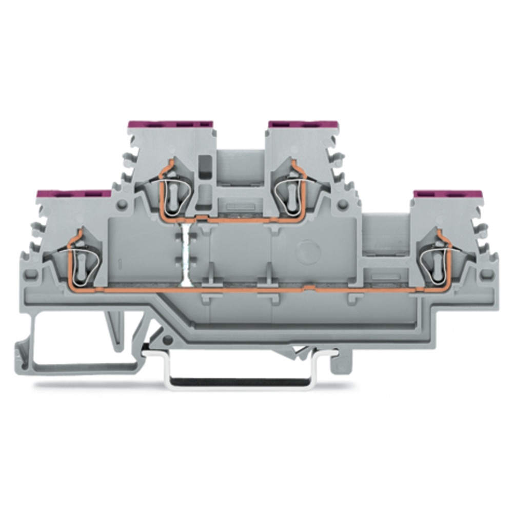 Wago Doppelstockklemme 279-508 Doppelstockklemme 4-Leiter-Durchgangsklemme L Gehäusefarbe grau intern gebrückt Leitereinführung violett bedruckt grau Hersteller WAGO Serie 279 EAN Nr. 4050821237266 Warengruppe WAGO Reihenklemmen