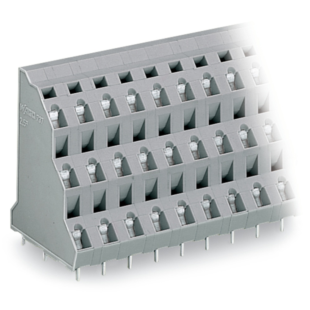 Wago Dreistock Klemmenleiste 737-504 Dreistock-Klemmenleiste 3 Lötstifte in Reihe 4x3-polig Rastermaß 7,5 mm/0.295 in grau Wago Serie 737 EAN Nr. 4045454022457 Warengruppe WAGO Durchführungsklemmen