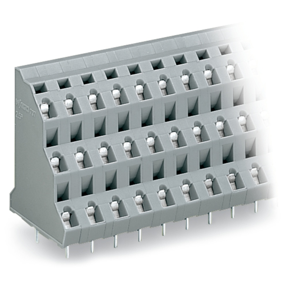 Wago Dreistock Klemmenleiste 737-552 Dreistock-Klemmenleiste Lötstifte für Stockwerk 2 um das 1/2 Rastermaß versetzt 2x3-polig Rastermaß 7,5 mm/0.295 in grau Wago Serie 737 EAN Nr. 4045454019648 Warengruppe WAGO Durchführungsklemmen