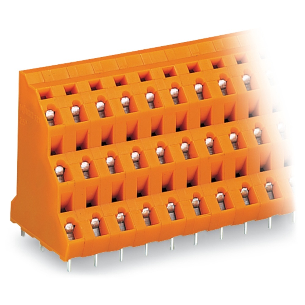 Wago Dreistock Klemmenleiste 737-602 Dreistock-Klemmenleiste 3 Lötstifte in Reihe 2x3-polig Rastermaß 7,62 mm/0.3 in orange Wago Serie 737 EAN Nr. 4045454018627 Warengruppe WAGO Durchführungsklemmen