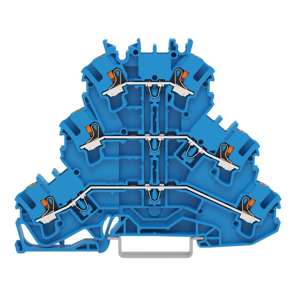 Wago Dreistockklemme 2202-3204 Dreistockklemme, mit Drücker, Durchgangs-/Durchgangs-/Durchgangsklemme, N/N/N, ohne Beschriftungsträger, für Anwendungen Ex e II u. Ex i geeignet, für Tragschiene 35x15 und 35x7,5, 2,5 mm², Push-in CAGE CLAMP, 2,50 mm², blau Hersteller Wago Klemmen EAN Nr. 4066966194050 Warengruppe WAGO TopJob S Klemmen
