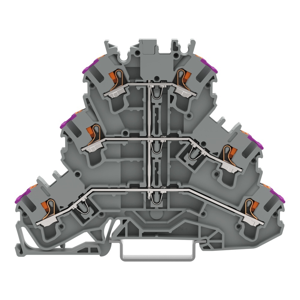 Wago Dreistockklemme 2202-3208 Dreistockklemme, mit Drücker, 6-Leiter-Durchgangsklemme, L, ohne Beschriftungsträger, für Anwendungen Ex e II geeignet, intern gebrückt, Leitereinführung violett bedruckt, für Tragschiene 35x15 und 35x7,5, 2,5 mm², Push-in CAGE CLAMP, 2,50 mm², grau Hersteller Wago Klemmen EAN Nr. 4066966194098 Warengruppe WAGO TopJob S Klemmen