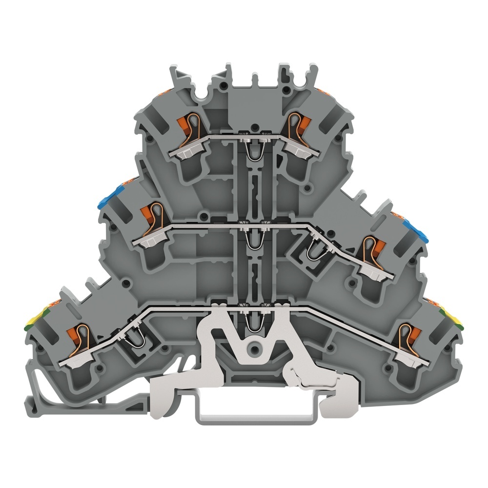 Wago Dreistockklemme 2202-3217 Dreistockklemme, Schutzleiter-/Durchgangs-/Durchgangsklemme, mit Drücker, 2,5 mm², PE/N/L, für Anwendungen Ex e II geeignet, ohne Beschriftungsträger, für Tragschiene 35x15 und 35x7,5, Push-in CAGE CLAMP, 2,50 mm², grau Hersteller Wago Klemmen EAN Nr. 4066966194111 Warengruppe WAGO TopJob S Klemmen