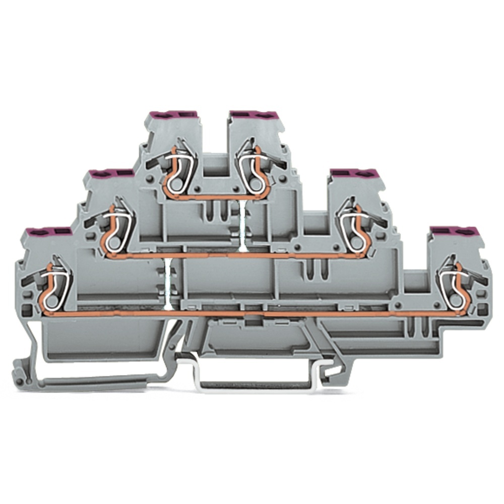 Wago Dreistockklemme 870-556 Dreistockklemme 6-Leiter-Durchgangsklemme L Gehäusefarbe grau intern gebrückt Leitereinführung violett bedruckt grau Wago Serie 870 EAN Nr. 4045454129705 Warengruppe WAGO Reihenklemmen