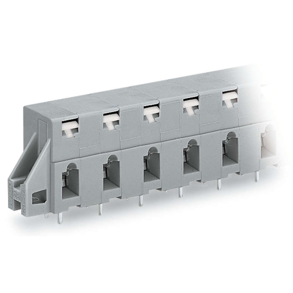 Wago Durchführungsklemmenleiste 741-527 Durchführungsklemmenleiste mit Befestigungsflanschen und Betätigungsdrückern 2 Lötstifte/Pol 7-polig mit Tipp-Prüfmöglichkeit Rastermaß 10 mm/0.394 in grau Wago Serie 741 EAN Nr. 4017332348706 Warengruppe WAGO Durchführungsklemmen