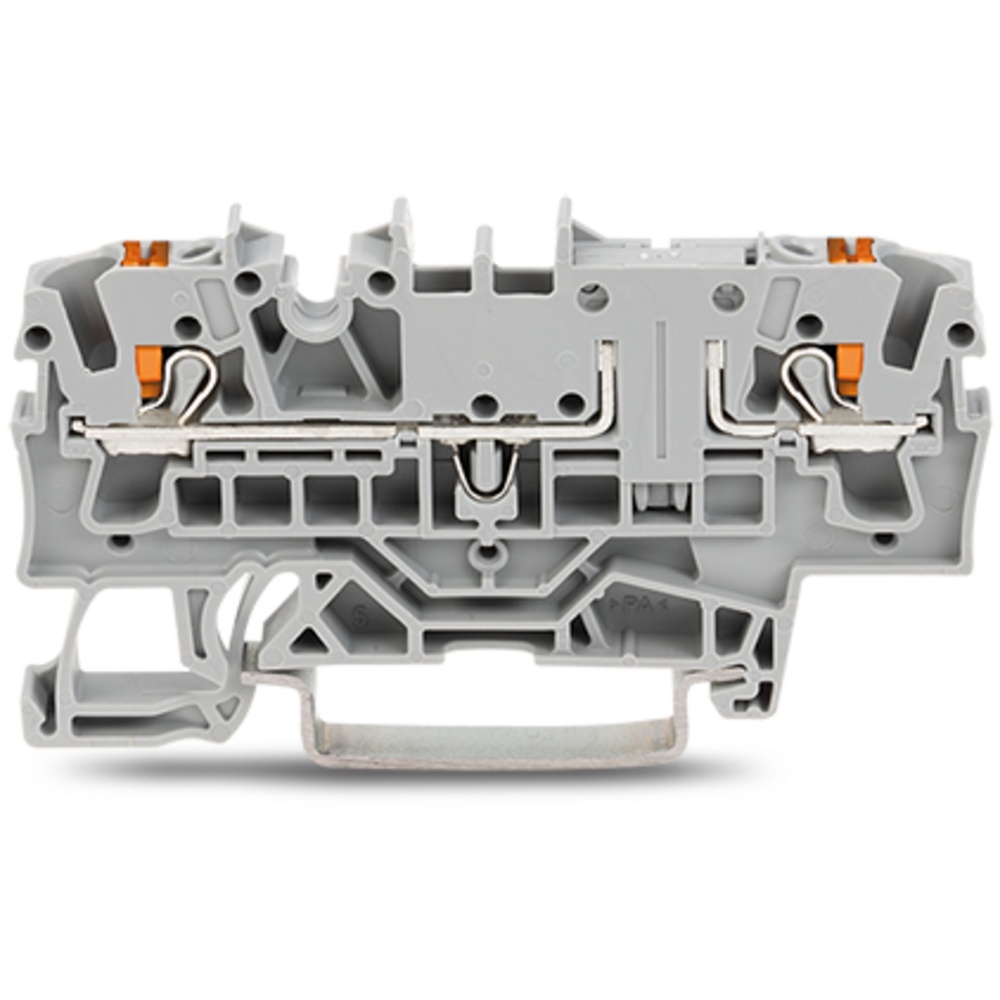 Wago Durchgangsklemme 2202-1601 2-Leiter-Durchgangsklemme mit Drücker 2,5 mm² grau 2-Leiter-Durchgangsklemme mit Drücker 2,5 mm² mit Prüfmöglichkeit konturengleich zu 2-Leiter-Trennklemme seitliche und mittige Beschriftung für Tragschiene 35x15 und 35x7,5 Push-in CAGE CLAMP Hersteller WAGO EAN Nr. 4055143907576 Warengruppe WAGO Reihenklemmen
