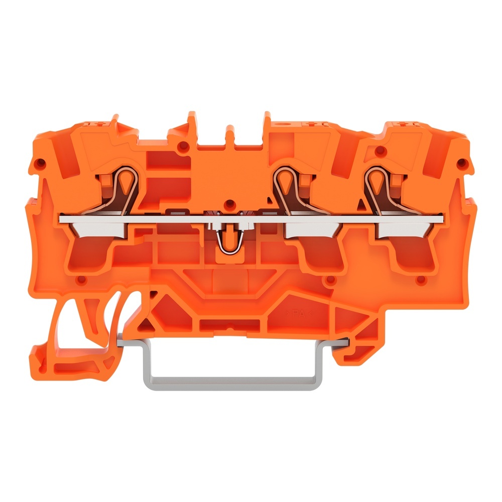 Wago Durchgangsklemme 2204-1302 3-Leiter-Durchgangsklemme,mit Drücker,4 mm²,orange 3-Leiter-Durchgangsklemme, mit Drücker, 4 mm², mit Prüföffnung, für Anwendungen Ex e II geeignet, seitliche und mittige Beschriftung, für Tragschiene 35x15 und 35x7,5, Push-in CAGE CLAMP , 4,00 mm², orange Hersteller Wago Nr. 22041302 EAN Nr. 4066966268072 Warengruppe WAGO Reihenklemmen