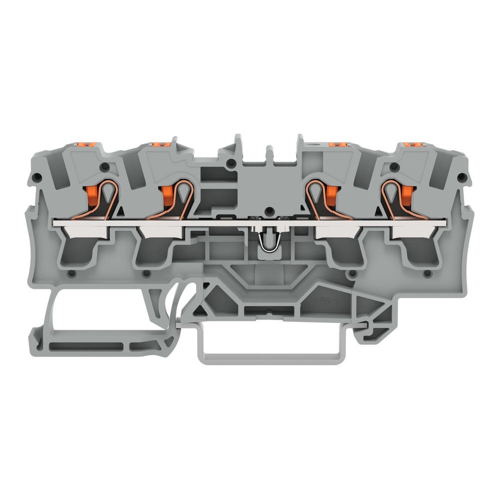 Wago Durchgangsklemme 2204-1401 4-Leiter-Durchgangsklemme mit Drücker 4 mm² mit Prüföffnung grau 4-Leiter-Durchgangsklemme mit Drücker 4 mm² mit Prüföffnung seitliche und mittige Beschriftung für Tragschiene 35x15 und 35x7,5 Push-in CAGE CLAMP grau Hersteller WAGO Nummer 22041401 EAN Nr. 4055143711371 Warengruppe WAGO Reihenklemmen