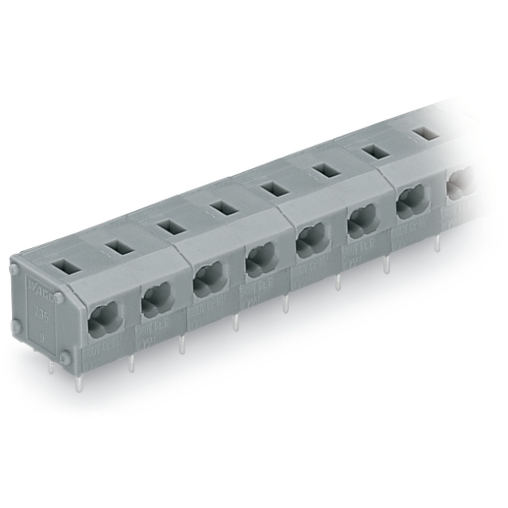 Wago Einzelklemme 235-553 2-Leiter-Klemmenleiste 2 Lötstifte/Pol 3-polig Rastermaß 7,5/7,62 mm/0.3 in ohne Betätigungsdrücker grau Wago Serie 235 EAN Nr. 4044918831369 Warengruppe WAGO Durchführungsklemmen