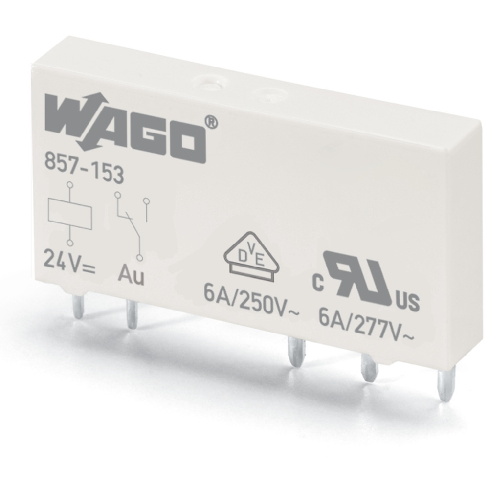 Wago Elementarrelais 857-151 Elementarrelais DC 12 V/6 A 1 Wechsler mit Goldkontakten Elementarrelais Eingangsnennspannung DC 12 V 1 Wechsler Grenzdauerstrom 6 A mit Goldkontakten 5 mm Baubreite Hersteller WAGO Nummer 857151 EAN Nr. 4055143693257 Warengruppe WAGO Elektronik