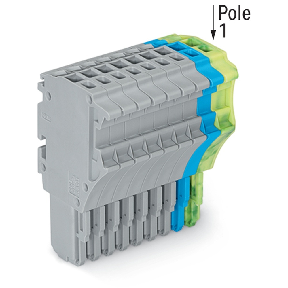 Wago Federleiste 2020-110/000-038 1-Leiter-Federleiste mit PE-Anfangsmodul (grün-gelb) zum Einstecken in Basisklemmen kodierbar 10-polig grün-gelb/blau/grau Wago Serie 2020 EAN Nr. 4050821027294 Warengruppe WAGOxCOM System