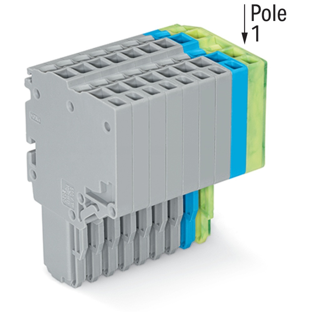 Wago Federleiste 2020-209/000-038 2-Leiter-Federleiste mit PE-Anfangsmodul (grün-gelb) zum Einstecken in Basisklemmen kodierbar 9-polig grau, blau, grün-gelb Wago Serie 2020 EAN Nr. 4050821091547 Warengruppe WAGOxCOM System