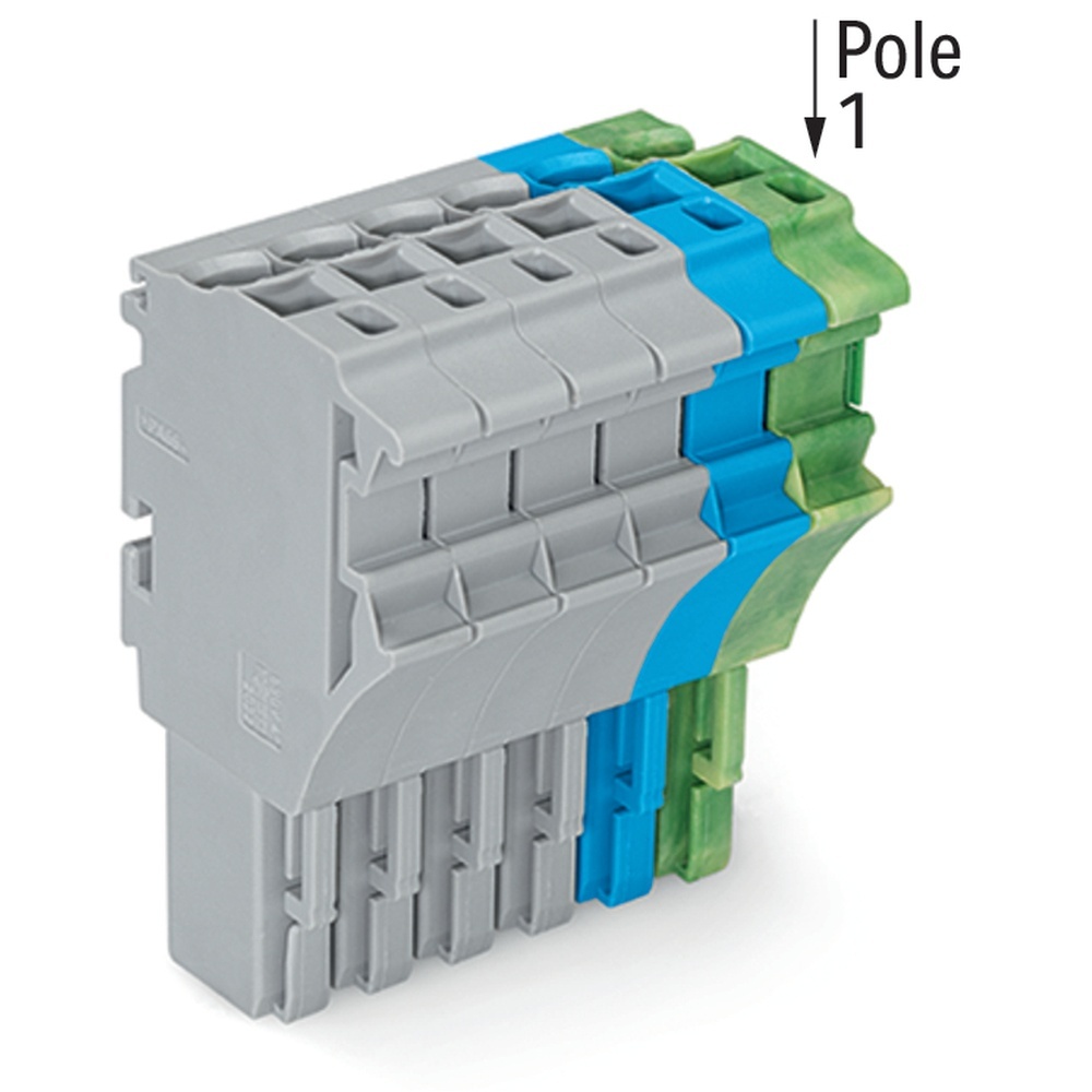 Wago Federleiste 2022-106/000-038/999-953 1-Leiter-Federleiste,Push-in CAGE CLAMP ,4 mm²,grau/blau/grün-gelb 1-Leiter-Federleiste, Push-in CAGE CLAMP , 4 mm², Rastermaß 5,2 mm, 6-polig, mittige Verriegelungsklinke, 4,00 mm², grau/blau/grün-gelb Hersteller Wago Nr. 2022106000038990000 EAN Nr. 4055143534437 Warengruppe WAGOxCOM System