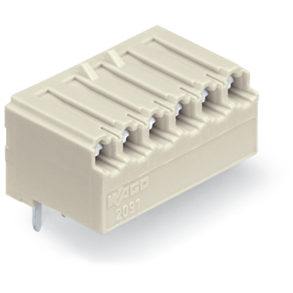 Wago Federleiste 2091-1326/200-000 Federleiste mit abgewinkelten Lötstiften 6-polig Rastermaß 3,5 mm/0.138 in lichtgrau Hersteller WAGO Serie 2091 EAN Nr. 4050821395997 Warengruppe WAGO Picomax