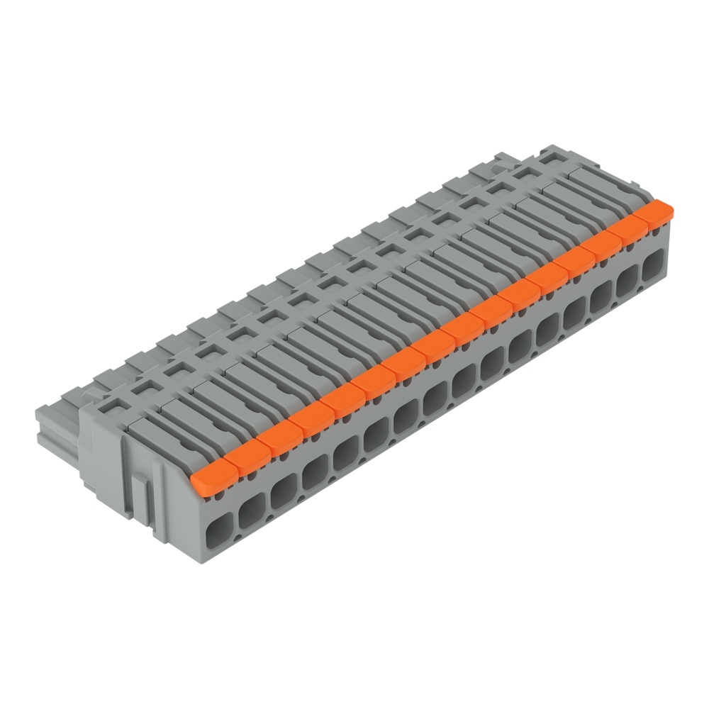 Wago Federleiste 2231-1116/327-000 1-Leiter-Federleiste,Hebel,Push-in CAGE CLAMP ,grau 1-Leiter-Federleiste, Hebel, Push-in CAGE CLAMP , 2,5 mm², Rastermaß 5 mm, 16-polig, 2,50 mm², grau• Intuitive und werkzeuglose Hebelbetätigung• Universalanschluss für alle Leiterarten• Direktes Stecken eindrähtiger Leiter und feindrähtiger Leiter mit Aderendhülsen• Bauhöhe nur 11,5 mm• Prüföffnung 0 Grad und 90 Grad zur Leitereinführung• Kodierbar Hersteller Wago Nr. 22311116327000 EAN Nr. 4066966416251 Warengruppe WAGO Multistecksystem