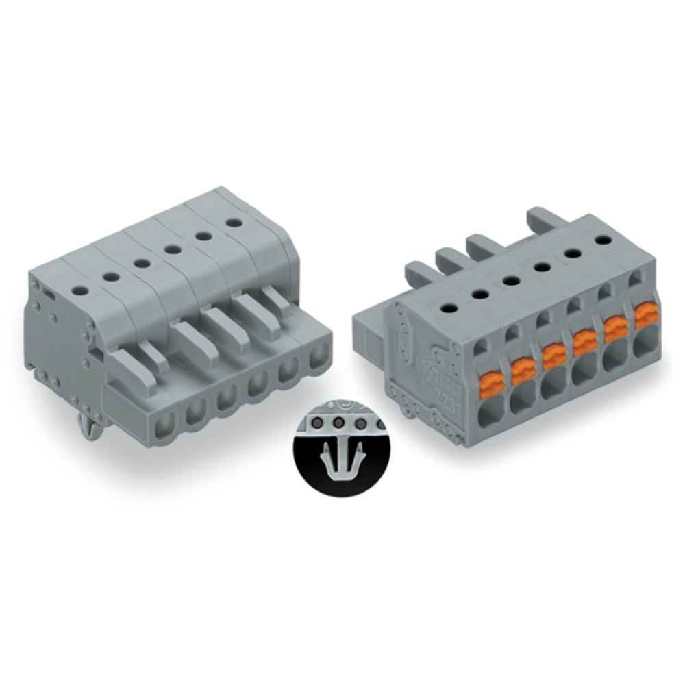 Wago Federleiste 2231-123/008-000 Federleiste mit Betätigungsdrückern und Rastfüßen 23-polig Rastermaß 5 mm/0.197 in kodierbar mit 2 Rastnasen Blechdicke 0,6x1,2 mm Befestigungslöcher Ø 3,5 mm mit Montageadapter 209-137 auch auf TS 35 grau Wago Serie 2231 EAN Nr. 4045454722302 Warengruppe WAGO Multistecksystem