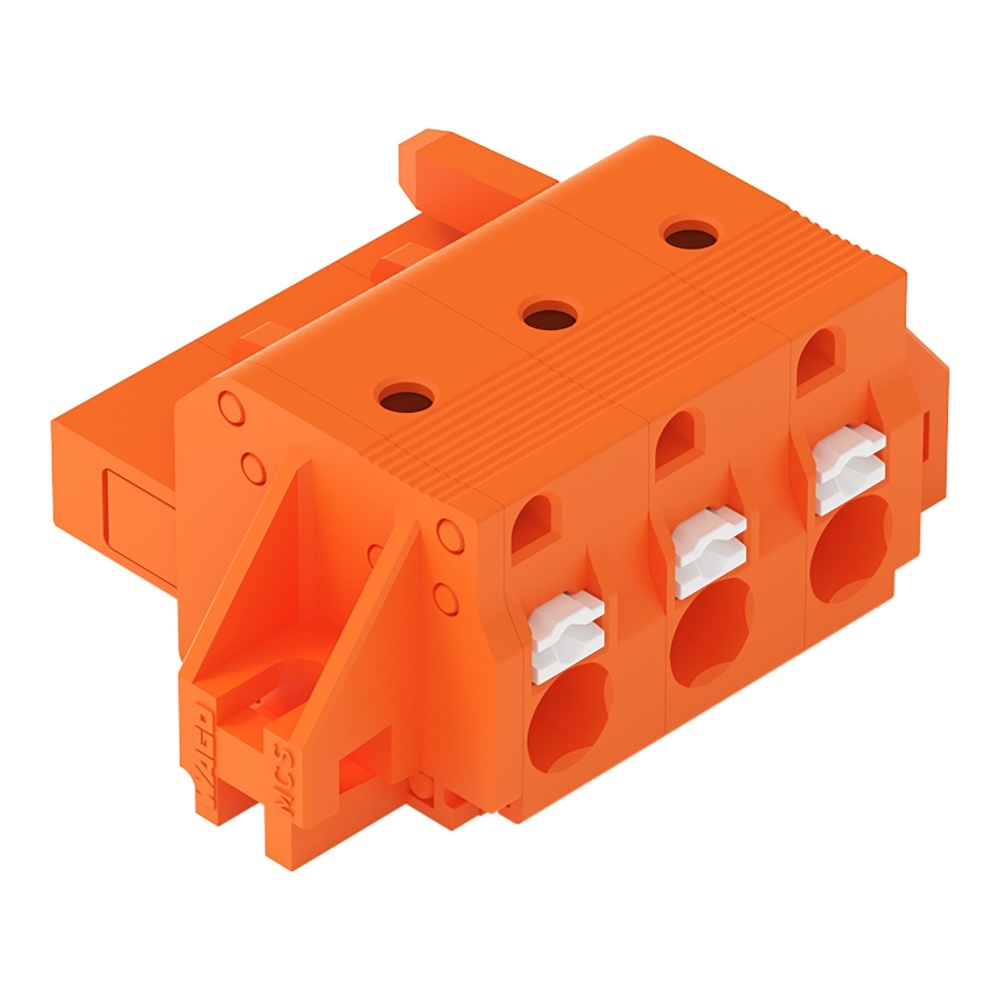 Wago Federleiste 2231-703/031-000 Federleiste mit Betätigungsdrückern und Befestigungsflanschen 3-polig Rastermaß 7,62 mm/0.3 in kodierbar nur 1 Rastnase orange Wago Serie 2231 EAN Nr. 4045454812256 Warengruppe WAGO Multistecksystem