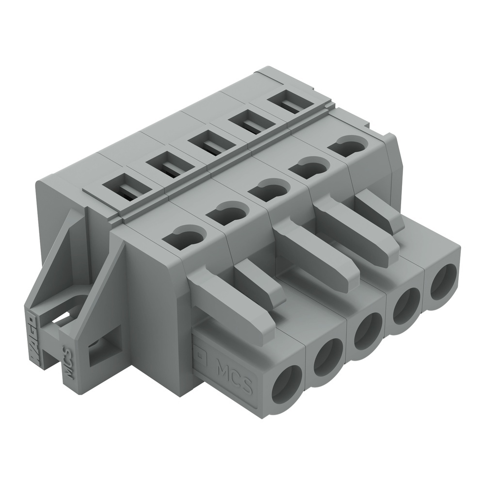 Wago Federleiste 231-105/031-000 Federleiste mit Befestigungsflanschen 5-polig Rastermaß 5 mm/0.197 in kodierbar mit 2 Rastklinken für Oberflächenmontage für Schraub- o.ä. Befestigungsarten mit Kodiernase mit Rastnase grau Wago Serie 231 EAN Nr. 4044918339070 Warengruppe WAGO Multistecksystem