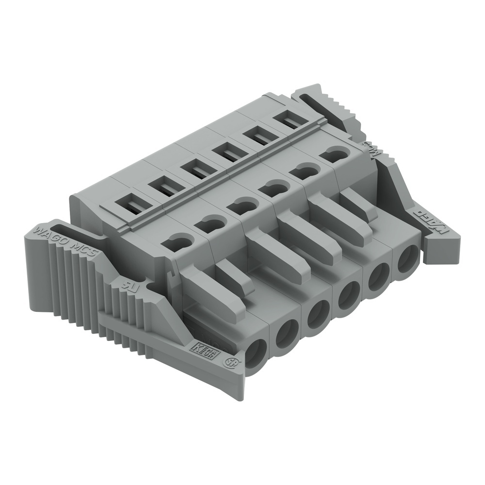 Wago Federleiste 231-106/037-000 Federleiste mit Verriegelungsklinken 6-polig Rastermaß 5 mm/0.197 in kodierbar mit 2 Rastklinken mit Kodiernase mit Rastnase grau Wago Serie 231 EAN Nr. 4044918339537 Warengruppe WAGO Multistecksystem
