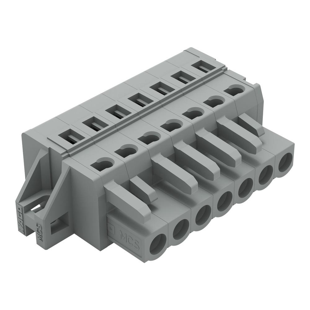 Wago Federleiste 231-107/031-000/034-000 1-Leiter-Federleiste,CAGE CLAMP ,2,5 mm²,grau 1-Leiter-Federleiste, CAGE CLAMP , 2,5 mm², Rastermaß 5 mm, 7-polig, Befestigungflansch, Zugentlastungsplatte, 2,50 mm², grau Universalanschluss für alle Leiterarten Vereinfachte Verdrahtung in der Kabelvorkonfektionierung und auf Geräten dank zweier Betätigungsrichtungen für die CAGE CLAMP Steckbarer Prüfabgriff Kodierbar Hersteller Wago Nr. 231107031000034000 EAN Nr. 4044918339797 Warengruppe WAGO Multistecksystem