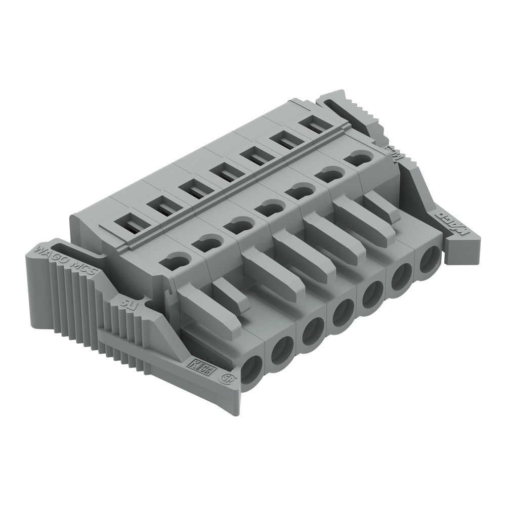 Wago Federleiste 231-107/037-000 Federleiste mit Verriegelungsklinken 7-polig Rastermaß 5 mm/0.197 in kodierbar mit 2 Rastklinken mit Kodiernase mit Rastnase grau Wago Serie 231 EAN Nr. 4044918339803 Warengruppe WAGO Multistecksystem