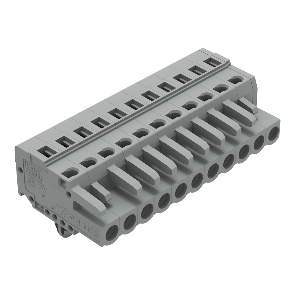 Wago Federleiste 231-111/008-000 Federleiste mit Rastfuß 11-polig Rastermaß 5 mm/0.197 in kodierbar mit 2 Rastklinken Blechdicke 0,6x1,2 mm Befestigungslöcher Ø 3,5 mm mit Montageadapter 209-137 auch auf TS 35 mit Kodiernase mit Rastnase grau Wago Serie 231 EAN Nr. 4044918341165 Warengruppe WAGO Multistecksystem