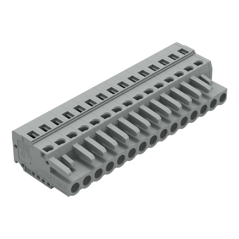 Wago Federleiste 231-115/026-000 Federleiste 15-polig Rastermaß 5 mm/0.197 in mit 2 Rastklinken kodierbar mit Kodiernase mit Rastnase grau Wago Serie 231 EAN Nr. 4044918341974 Warengruppe WAGO Multistecksystem