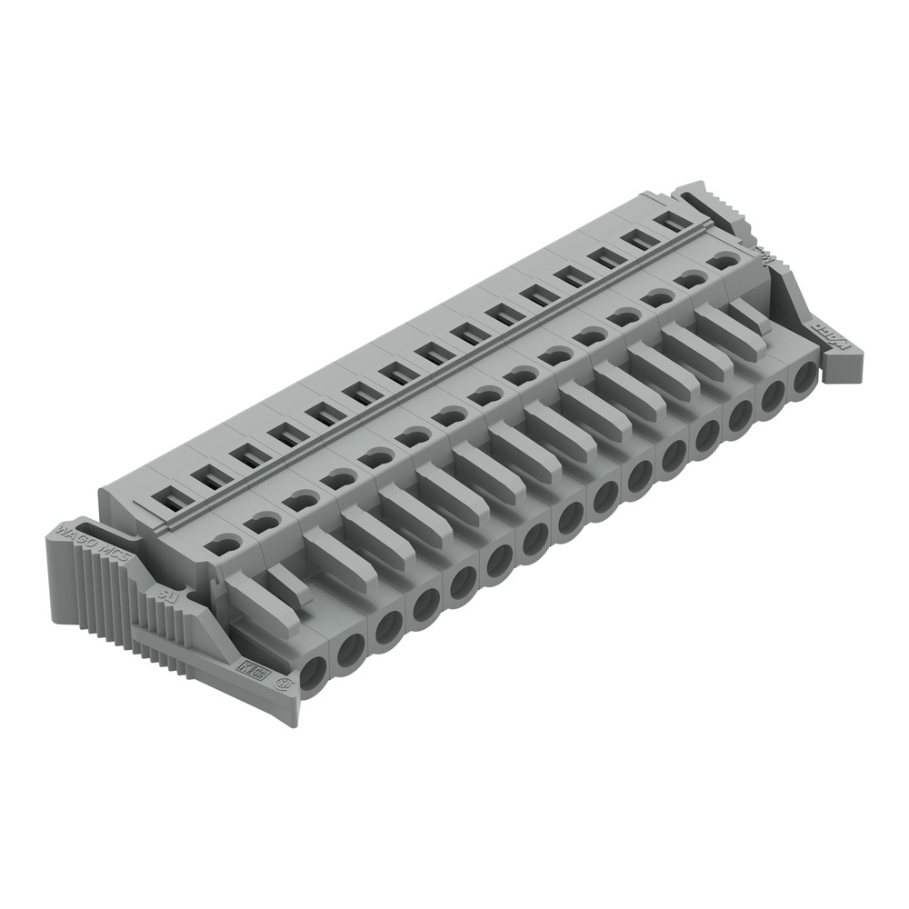 Wago Federleiste 231-115/037-000 Federleiste mit Verriegelungsklinken 15-polig Rastermaß 5 mm/0.197 in kodierbar mit 2 Rastklinken mit Kodiernase mit Rastnase grau Wago Serie 231 EAN Nr. 4044918342063 Warengruppe WAGO Multistecksystem