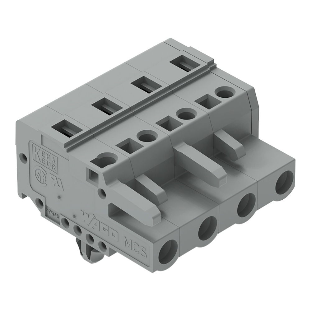 Wago Federleiste 231-204/008-000 Federleiste mit Rastfüßen 4-polig Rastermaß 7,5 mm/0.295 in mit Montageadapter 209-137 auch auf TS 35 kodierbar mit 2 Rastklinken Blechdicke 0,6x1,2 mm Befestigungslöcher Ø 3,5 mm grau Hersteller WAGO Serie 231 EAN Nr. 4044918374750 Warengruppe WAGO Multistecksystem