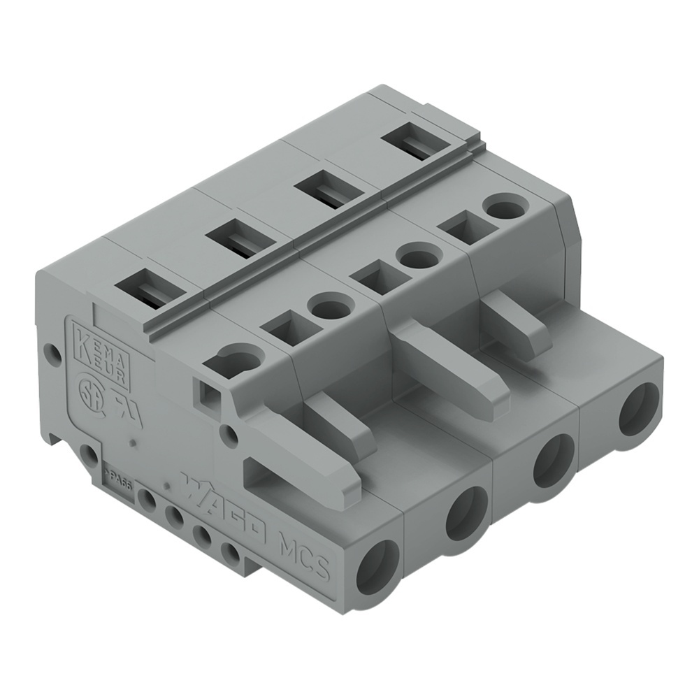 Wago Federleiste 231-204/026-000 Federleiste 4-polig Rastermaß 7,5 mm/0.295 in kodierbar mit 2 Rastklinken mit Kodiernase mit Rastnase grau Hersteller WAGO Serie 231 EAN Nr. 4044918344029 Warengruppe WAGO Multistecksystem