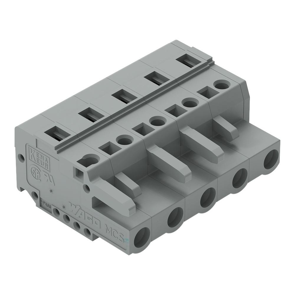 Wago Federleiste 231-205/026-000 Federleiste 5-polig Rastermaß 7,5 mm/0.295 in kodierbar mit 2 Rastklinken mit Kodiernase mit Rastnase grau Hersteller WAGO Serie 231 EAN Nr. 4044918344159 Warengruppe WAGO Multistecksystem