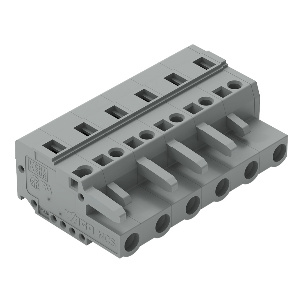 Wago Federleiste 231-206/026-000 Federleiste 6-polig Rastermaß 7,5 mm/0.295 in kodierbar mit 2 Rastklinken mit Kodiernase mit Rastnase grau Hersteller WAGO Serie 231 EAN Nr. 4044918344227 Warengruppe WAGO Multistecksystem