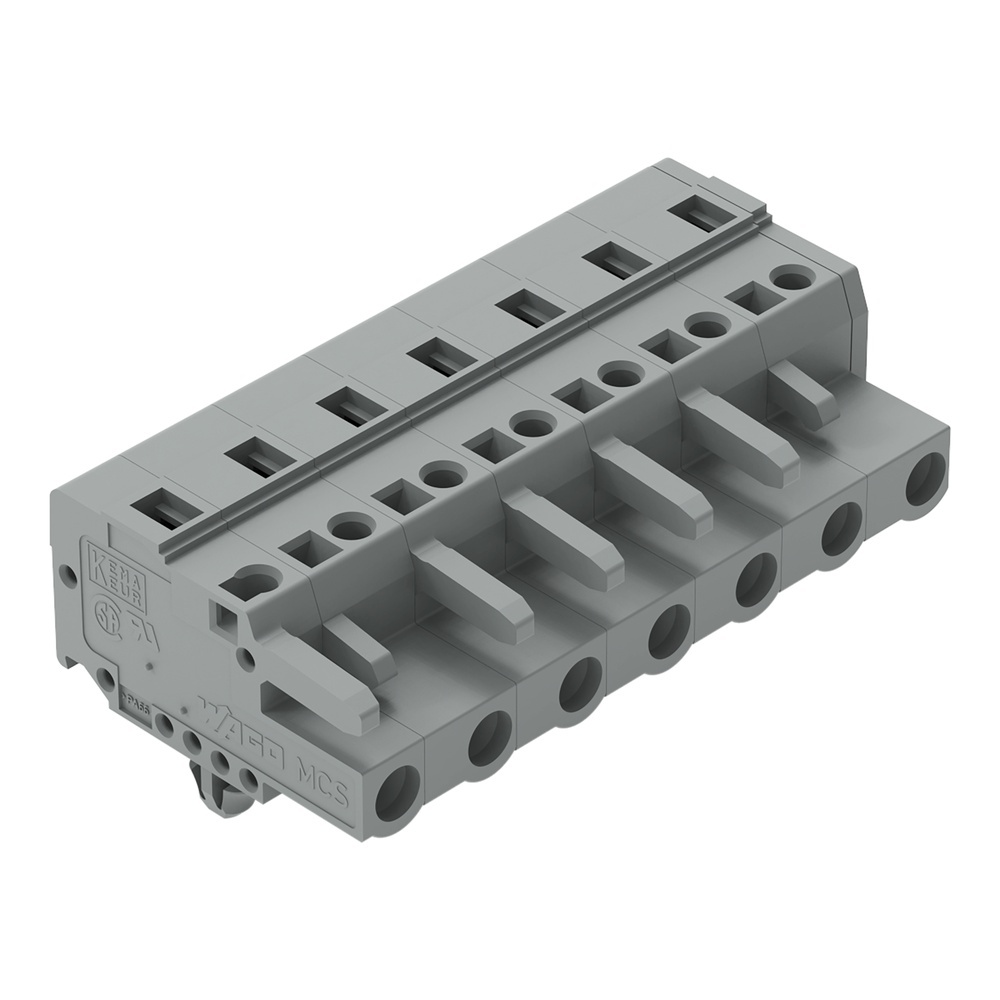 Wago Federleiste 231-207/008-000 Federleiste mit Rastfüßen 7-polig Rastermaß 7,5 mm/0.295 in mit Montageadapter 209-137 auch auf TS 35 kodierbar mit 2 Rastklinken Blechdicke 0,6x1,2 mm Befestigungslöcher Ø 3,5 mm grau Hersteller WAGO Serie 231 EAN Nr. 4044918374866 Warengruppe WAGO Multistecksystem