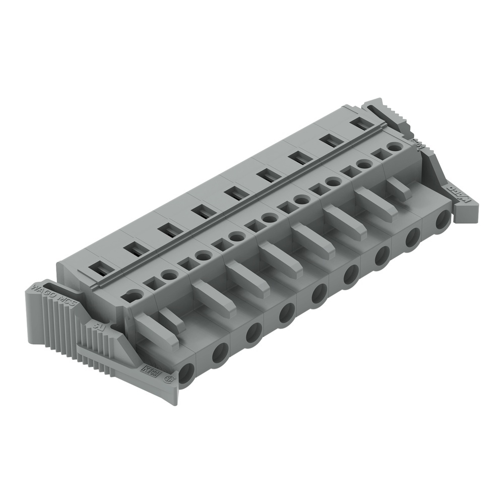 Wago Federleiste 231-209/037-000 Federleiste mit Verriegelungsklinken 9-polig Rastermaß 7,5 mm/0.295 in kodierbar mit 2 Rastklinken mit Kodiernase mit Rastnase grau Hersteller WAGO Serie 231 EAN Nr. 4044918367356 Warengruppe WAGO Multistecksystem