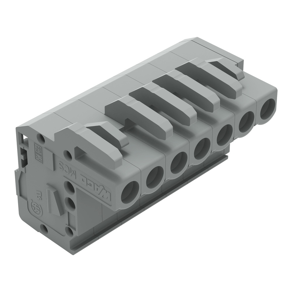 Wago Federleiste 232-107/026-000 Abgewinkelte Federleiste 7-polig Rastermaß 5 mm/0.197 in kodierbar mit 2 Rastklinken Leiterabgang zur welligen Seite der Stiftleiste grau Hersteller WAGO Serie 232 EAN Nr. 4044918383929 Warengruppe WAGO Multistecksystem